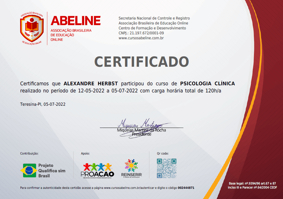 Me chamo Alexandre, sou formado pela Universidade Positivo (Curitiba-PR), baseio meu trabalho em uma abordagem humanista, buscando sempre priorizar um atendimento acolhedor e humanizado, livre de julgamentos, para que você se sinta confortável e respeitado na sua individualidade e no seu próprio tempo.