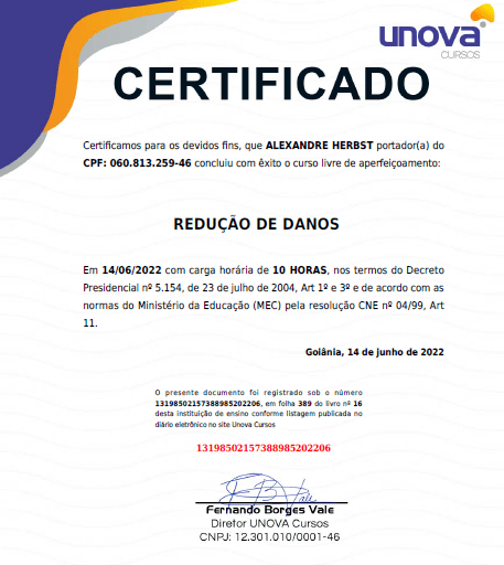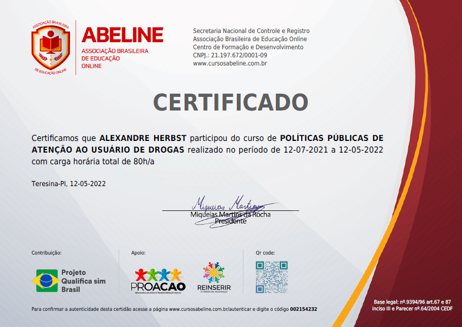 Neste período também tive a oportunidade de trabalhar dentro do CAPS-AD (Centro de Atenção Psicossocial – Álcool e Drogas), com uma equipe multidisciplinar, onde adquiri grande conhecimento e experiência no acompanhamento à usuários de álcool e outras drogas, sempre pautado nas estratégias de redução de danos e no respeito ao indivíduo.