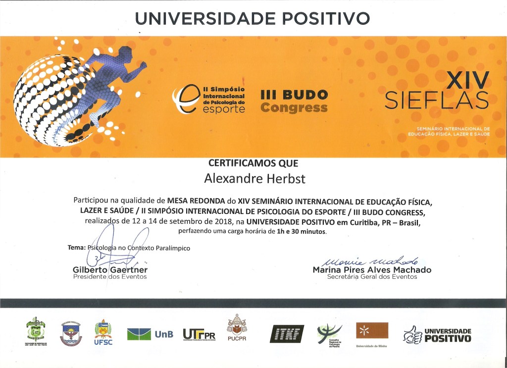 Como psicólogo esportivo trabalhei com diversas modalidades e faixas etárias, desde categorias de base do futebol, futebol profissional (Paraná Clube), equipes de futebol americano, atletas de escalada esportiva, natação, artes marciais, além de ministrar palestras e workshops.